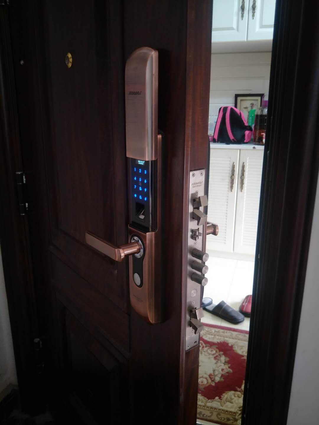 安个指纹密码锁试一下,真不一样。空手外出,也不害怕。没带哪些不出回家了一拿,看一下手指,锁匙在哪,即使手指头磨花了还可用登陆密码开门锁。